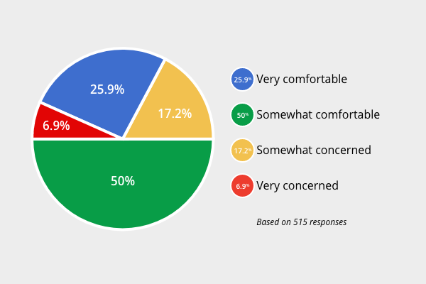 Out of all the reopening plans, teachers seem to be more comfortable with all-remote schooling. 6.9% of teachers were very concerned, 17.2% were somewhat concerned, 50% were somewhat comfortable, and 25.9% were very comfortable.